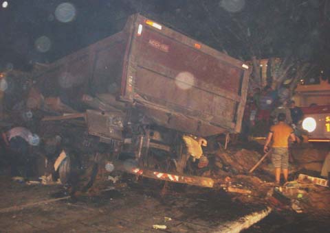 Até o presente momento, testemunhas não souberam informar se o condutor da caçamba, que estava carregada com areia, foi localizado, se evadiu do local ou está entre as vítimas fatais ou entre os feridos. Parte da cidade ficou sem o fornecimento de energia elétrica devido à colisão com o poste.
