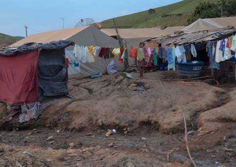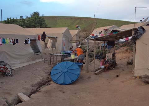 Os desabrigados estão divididos em dois alojamentos sendo um no acesso ao distrito (vizinho ao conjunto habilitacional Paulo VI) e outro na Rua Boa Vista na outra extremidade do logradouro margeando a linha ferrea. Nos dois casos a situação de sobrevivência são idênticas. Paralelo ao fato, sendo construídas em ‘passo de tartaruga’ nem 10% das obras foram concluídas. Se desconhece o real motivo desta situação vexatória que contradiz com o alarde feita pelo governo na imprensa quando publicou que "A Primeira Etapa da Entrega das Casas aos Desalojados foi Concluída".