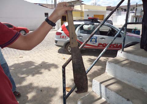 Se dirigindo à residência da família, Heleno foi atingido na cabeça por um golpe da foice, mas conseguiu dominar o agressor que foi entregue a policia graças a um telefonema de vizinhos para os agentes da Delegacia local cujo delegado é o Dr. Gustavo Pires. No local da ocorrência, os anos os ânimos foram serenados e as vitimas foram transportadas para o Hospital Dagoberto Omena.