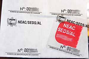 A portaria é assinada pelo governador Teotonio Vilela Filho e pelos secretários Dário César (Defesa Social) e Alexandre Toledo (Saúde), e destaca ainda a importância epidemiológica do esclarecimento da causa mortis dos óbitos para a definição e implantação de políticas de saúde pública. Além das pulseiras, também foi adotado o uso do Boletim de Identificação de Cadáver (BIC) e o Número de Identificação de Cadáver (NIC).