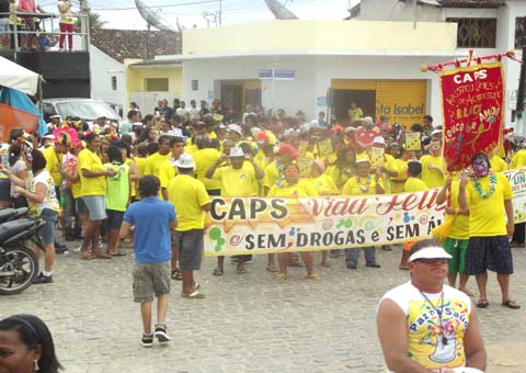 Na tarde desta quinta feira 17 os pacientes do CAPS abriram o carnaval de União dos Palmares, que teve a participação de uma banda de fanfarra e um mini-trio elétrico comandando a alegria das quase 500 pessoas assistidas pela instituições de saúde como o NASF, Saúde da Família, Hospital São Vicente de Paulo, CTA cujo desfile foi iniciado as 15:00 hs defronte a Secretaria Municipal de Saúde na Rua Dr. Hermano Plech.