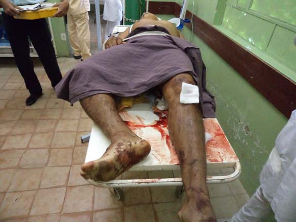 Uma guarnição da ‘Base Comunitária’ da localidade se deslocou imediatamente ao local e fez o socorro da vitima que recebeu os primeiros socorros no Hospital São Vicente de Paulo e em seguida, por determinação médica foi removido para o Hospital Geral do Estado por entender a equipe de plantão que havia necessidade de intervenção cirúrgica.