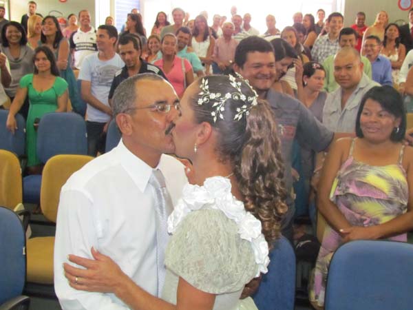 Os noivos, o mecânico de motos Cristiano Costa de Amorim, 43 anos, e o cozinheiro (que casou vestido a caráter) Josenildo Soares da Rocha, 33, conhecido como Babalu, se mostraram emocionados durante a cerimônia civil realizada pela juíza Lorena Carla Santos Vasconcelos Sotto Maior, titular da 2ª Vara Outros 12 casais oficializaram a união na cerimônia coletiva, que foi acompanhada por mais de 200 pessoas.