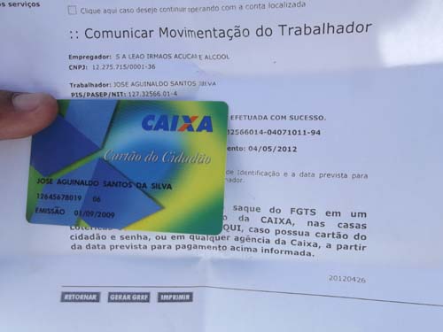 Um trabalhador identificado como José Aguinaldo dos Santos fez questão de mostrar a reportagem um erro em seu nome e na identificação do PIS-PASEP que ele alega estar lhe causando problemas de identificação. ‘Não sei se foi erro de fato ou provocado’ disse o rurícola.