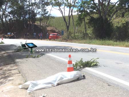 Nos levantamentos preliminares realizados pelos agentes da Policia Federal Rogério e Pereira que atenderam a ocorrência provavelmente o condutor da motocicleta ao tentar fazer uma curva fechada pressentiu a aproximação de outra carreta que descia o declive em sentido contrário e como não deu tempo para desviar (ele estaria cortando a carreta envolvida no sinistro), desviou, bate inicialmente no tanque de combustível, em uma das ‘lameiras’ do auto carga e em seguida no segundo, oportunidade em que já sem controle recebeu um grande impacto que lhe proporcionou escoriações por todo o corpo a exemplo da sua mulher que viajava como carona.