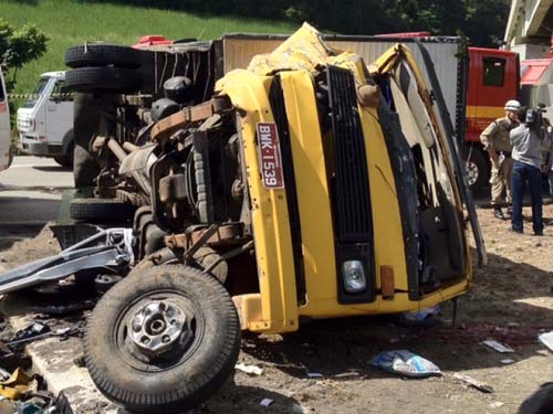 Uma colisão na manhã desta segunda-feira (25) envolvendo uma van de transporte alternativo, placa MML 6993/Joaquim Gomes-AL, que faz a linha Joaquim Gomes/Maceió, e um caminhão, placa BYK 1539/SP deixou 22 pessoas feridas e dois mortos. O acidente foi registrado no trevo da BR-101, que da acesso as cidades de Messias e Murici, interior de Alagoas.