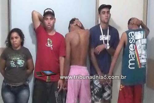 Foram presos os acusados Antonia Maria da Silva, casada, de 33 anos de idade, residente na Rua da Vaquejada em São José da Laje (cuja mãe identificada como Maria do Socorro também está presa por tráfico de drogas e um irmão assassinado na semana passada naquela cidade fronteiriça), o marido de Antonia identificado Wanderson Pereira dos Santos de 19 anos de idade, residente na Rua Fortaleza em União dos Palmares, que já tem duas passagens pela policia sendo uma em 28 de agosto de 2011 (roubo) e outra em 06 de fevereiro de 2012 (tentativa de homicídio), Jonatas de Lima Carlos de 25 anos de idade, residente no Bairro Eustaquio Gomes em Maceió, e os menores G.F.S. de 16 anos residente na Travessa São Vicente e J.F.L.S, também de 16 anos, residente no Bairro Abolição, este dois em União dos Palmares.
