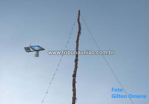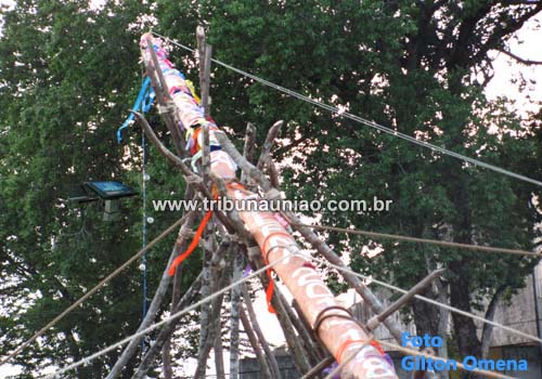 Na praça, o mastro é fincado à tração humana (da mesma forma como foi carregado) com o auxilio de cordas defronte ao templo, e no próximo dia 23 será içada nele uma bandeira com a pintura da santa também trazida ao local em procissão conhecida como ‘Procissão Luminosa’ (os fieis conduzem lamparinas acesas). O retorno da imagem para a Casa Paroquial será o dia 3 de fevereiro quando ocorrerá nova procissão luminosa.