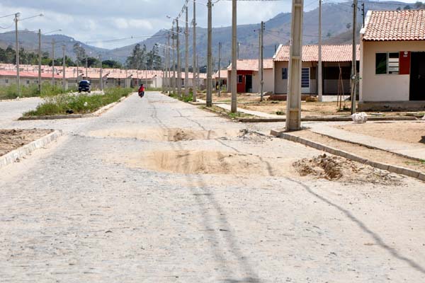 Na rua principal de acesso ao Bairro pode-se verificar o calçamento que parcialmente cedeu, obrigando inclusive uma das vias a ser interditada. O fato pode ser registrado em quase todas as quadras naquele conjunto que seria a redenção dos desabrigados e construído com o dinheiro do próprio contribuinte.