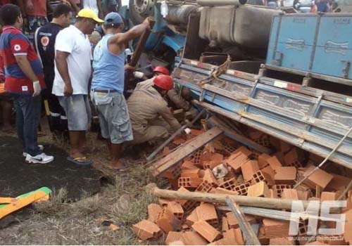 Um grave acidente ocorreu nesta quinta-feira (25), por volta das 13h30, na AL- 130, nas proximidades do povoado Impoeira de Baixo, zona rural de Pão de Açúcar. Um caminhão carregado com tijolos, pertencente ao comerciante de material de construção Herbert dos Anjos, 27, residente na cidade, capotou após o motorista perder o controle do veículo.