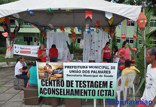 Funcionários da Secretaria da Saúde de União dos Palmares lotados no CTA (Centro de Testagem e Aconselhamento) realizaram trabalhos na manhã desta quarta feira (12) na Rua Marechal Deodoro defronte ao prédio da prefeitura municipal no centro da cidade, quando efetuaram distribuição de preservativos, panfletos educativos, proferiram palestras sobre DST/AIDS, e distribuiram brindes (maçãs do amor, chocolates e bolsas com preservativos masculino e feminino).