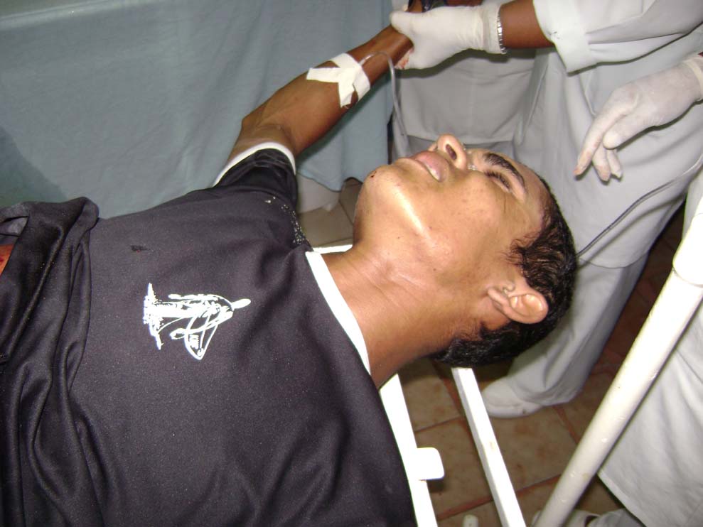 Os projéteis atingiram o peito direito e o quadril de Clodoaldo, sendo que este ultimo provocou a exposição das vísceras da vitima, levando a policia a suposição que se trata de arma de grosso calibre, possivelmente uma pistola nove milímetros ou ponto quarenta. A vitima, ainda lúcido, foi levado pelos militares cabo Martiniano e os soldados Sivaldo, J. Ferreira, Militão e Siqueira para a emergência do Hospital Regional São Vicente de Paulo, onde recebeu os primeiros socorros e devido à gravidade dos ferimentos, foi conduzido para a Unidade de Emergência Armando Lages, em Maceió. Até o fechamento desta matéria, seu estado inspirava cuidados.
