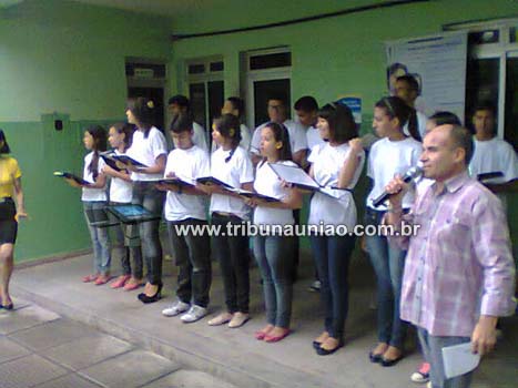 Os hinos foram cantados pelo coral do Espaço Cultural Acotirene, da secretaria de Educação.