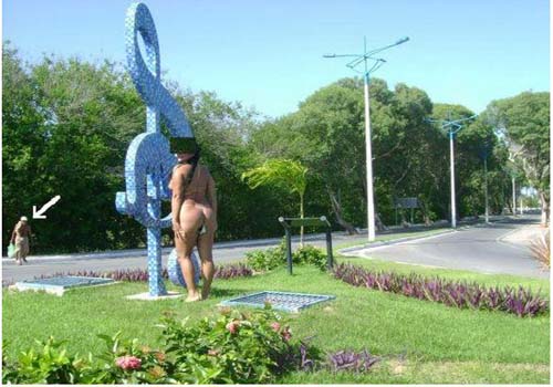 Nas fotos ela sensualiza. Tira a roupa em plena luz do dia em uma das vias mais movimentadas do município. E uma outra foto ela aparece no mesmo local, só que a noite.