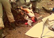 O Ford Fiesta ficou completamente destruído e o jovem condutor, que não tinha carteira de habilitação, teve parte da cabeça decepada.