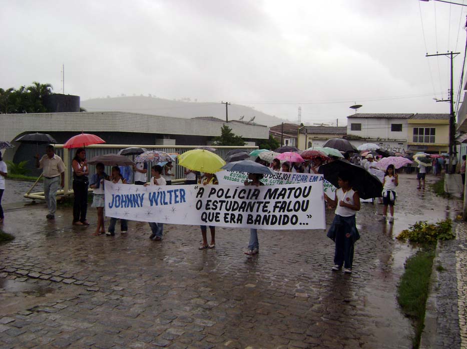 Cerca de 300 pessoas, em sua maioria estudantes, colegas e familiares do universitário da UFAL Johnny Wilker da Silva Pino, de 21 anos residente na Rua Tancredo Neves em União dos Palmares, morto a tiros no Conjunto Santos Dumont, em Maceió por uma guarnição da PM na noite do ultimo dia 25 de maio, realizaram na manhã desta terça feira (03) uma passeata pelas ruas cidade, em cujo roteiro foi inclusos o 2º BPM e o Fórum de Justiça local.