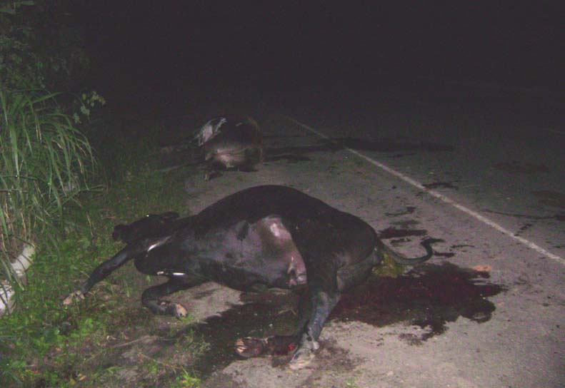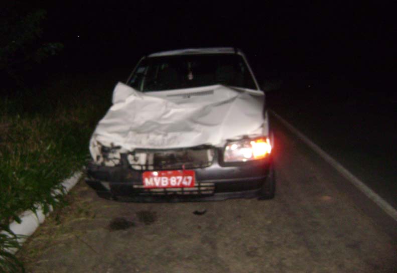 Um duplo abalroamento ocorreu por volta das 20,20 horas da noite desta sexta feira (5) no quilometro 49 da BR-104, no município de Branquinha, quando vários bois fugiram do cercado da Fazenda Barra do Dia e vagavam na pista de rolamento, provocando inicialmente uma colisão frontal com o Fiat Siena de cor prata, placas MUQ-8833/União dos Palmares, de propriedade do radialista Kiko Viana da Rádio AG-FM de União dos Palmares.