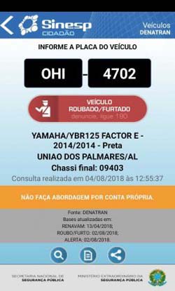 Os suspeitos que não tiveram seus nomes divulgados, estavam circulando em uma motocicleta modelo Yamaha YBR, preta, placa OHI-4702/União dos Palmares/AL com queixa de roubo.