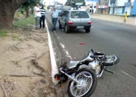 Do outro lado da via, sentido Tabuleiro, um motoqueiro parou para ver o acidente e se chocou com outro veículo. A moto, de placa NLV-4991, colidiu com o Uno prata, de placa MVH-0282.