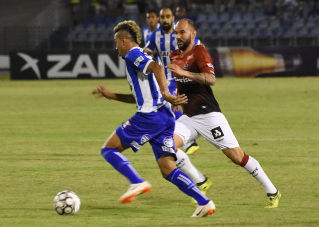 Bola rolando e o CSA desde os primeiros minutos se mostrava mais ativo, buscando o jogo e não demorou para criar a primeira chance. Hugo Cabral arriscou de fora da área, a bola desviou na defesa e assustou o goleiro Marcelo Pitol.