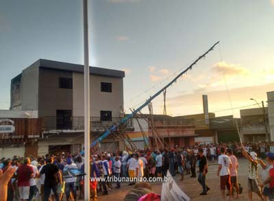 O momento mais aguardado foi o erguimento do mastro. As pessoas mais antigas, davam as orientações para não causar acidente. Por volta das 17h30, o mastro que servirá para hastear a bandeira da festa no próximo dia 23, foi erguido com cânticos e agradecimentos.