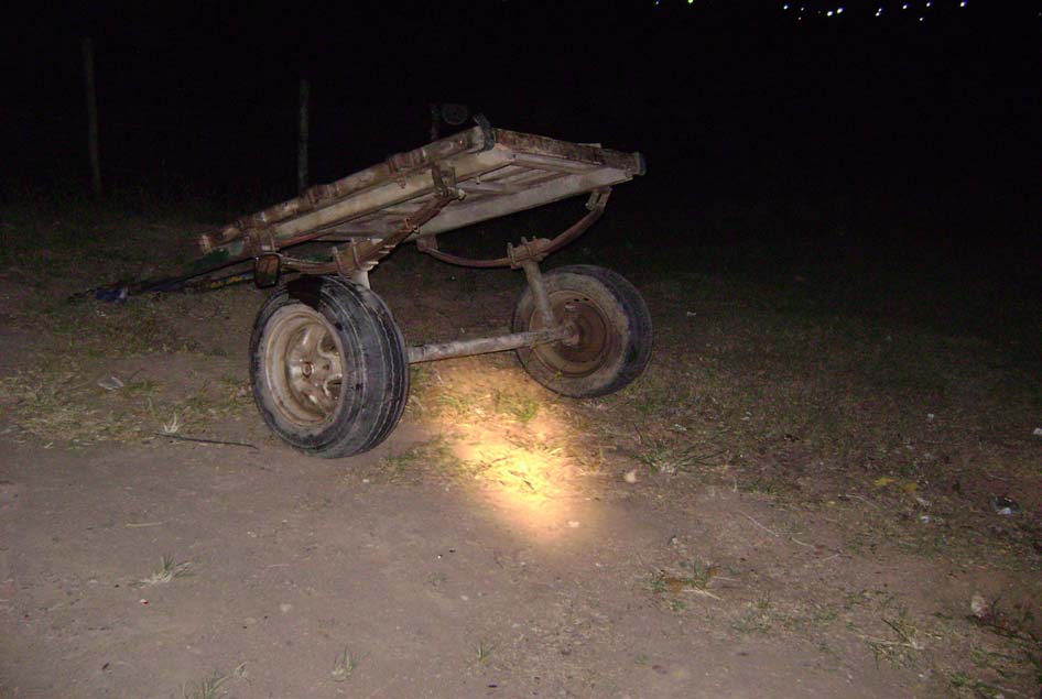 Os dois se dirigiam ao centro comercial na motocicleta Custom de cor cinza placa WLM-6318, quando foram surpreendidos pela carroça (foto 2) movida à tração animal (foto 3) conduzida pelo carroceiro gerais Joel residente na Rua do Jatobá, na periferia da cidade, que trafegava no centro da pista, o que tornou o choque inevitável.