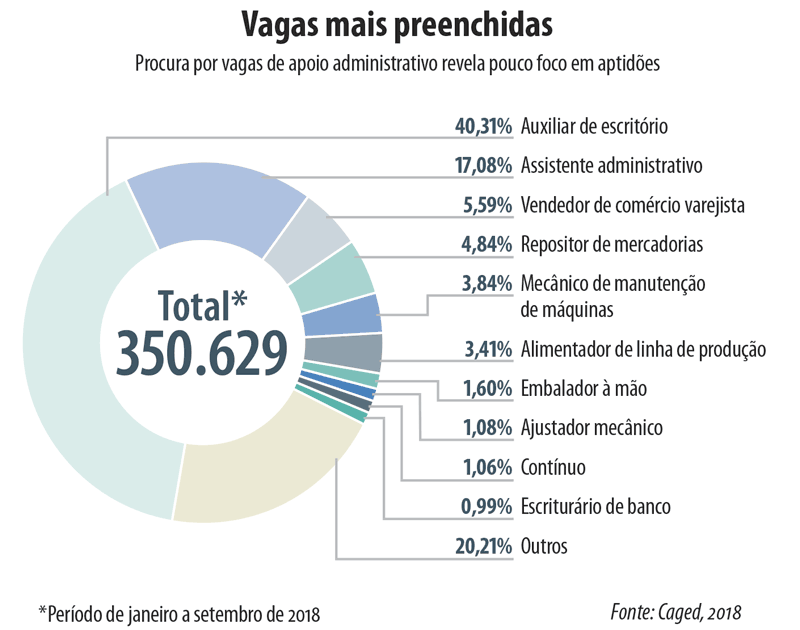 A diversificação das vagas de aprendizagem também é vista como uma deficiência a ser suprida. Segundo o antigo Ministério do Trabalho, 42% dos aprendizes em atividade trabalham como auxiliares de escritório; outros 17% são assistentes administrativos. Essa concentração é interpretada como um sinal de que a aprendizagem ainda é um caminho ao qual os jovens aderem por necessidade, e não para realizar alguma aptidão.