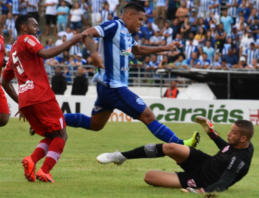 No minuto seguinte porém, o CSA chegou e abriu o placar. Em falha de Ferrugem, o CSA armou o contra-ataque, Patrick Fabiano carregou pelo meio, tocou para Apodi, que escorou e viu Robinho bater cruzado, mascado, no canto direito de Edson Mardden. Festa azulina no Trapichão. 1 a 0.