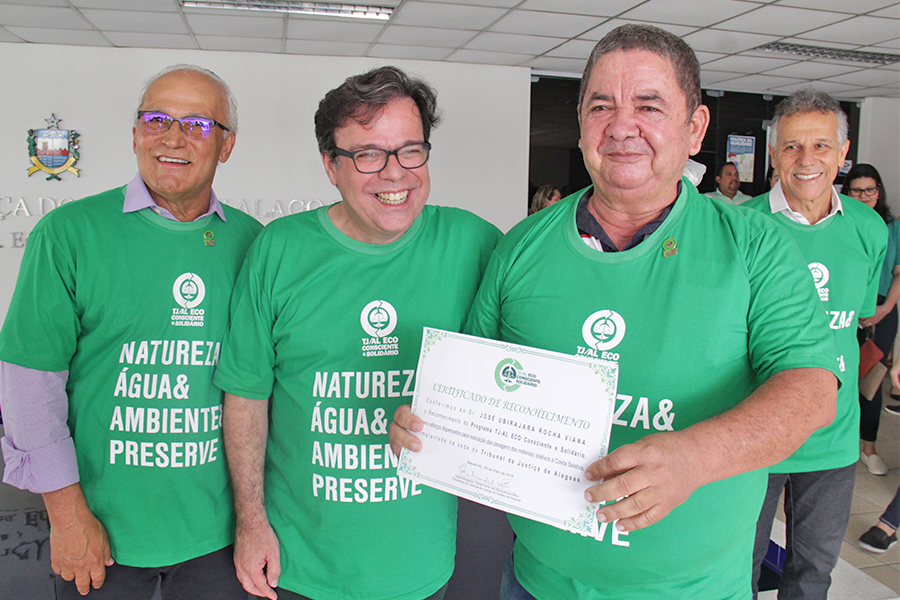 Durante a solenidade, o presidente Tutmés Airan entregou as premiações dos funcionários que se destacaram na coleta de resíduos para reciclagem. A Coleta Seletiva do TJAL envolve a separação do lixo gerado internamente, e também material que os servidores trazem de casa.