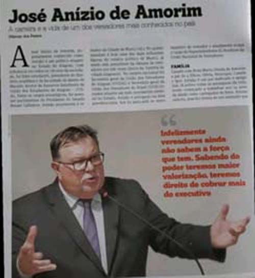 A liderança de 'Anizão' como é conhecido foi noticia em três páginas do informativo de circuçação nacional em uma das matérias sobre a 'Marcha dos Vereadores' ocorrido em abril deste ano em Brasilia.