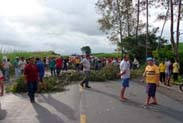O pequeno grupo armado de facões, pedras e paus cortaram várias arvores na margem da estrada (eucaliptos), colocaram folhagem e galhos na pista de rolamento, e durante todo o período em que realizavam o protesto – cujo objetivo era uma reunião com representantes do Ministério do Trabalho e da Usina – foram alvo de xingamentos e protestos de transeuntes que se diziam prejudicados e alegavam “nada ter a ver com o pagamento deles”.
