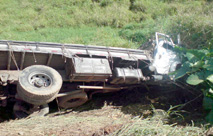 Daniel Inácio, condutor do caminhão, placa MHF-6620, Ituporanga/SC, que levava uma carga de batatas para o estado de Pernambuco, feriu-se e foi socorrido para o Hospital Geral do Estado.
