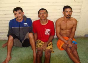 Nas primeiras horas da manha desta quinta feira, policiais do PELOPES sob o comando do capitão André Lima cuja guarnição também contava com os sargentos Sivaldo e Carles, cabos Santiago e Abdias e os soldados Edson, Siqueira e Gelson, em cumprimento a um Mandado de prisão expedido pelo Juiz José Alberto Barros da Comarca de São José da Laje, prendeu naquela cidade os traficantes Jaciléo Gomes da Silva, de 27 anos, (primeiro da foto dois) carregador de caminhões, residente na Rua Ernesto Marinho, sua esposa Lucilene da Silva de 27 anos, (foto 3) Joaquim Soares da Silva de 18 anos, (segundo da foto dois) residente na Rua Catangi em Ibateguara e Jaciel Gomes da Silva de 28 anos (terceiro da foto 2), residente na Rua Ernesto Marinho também