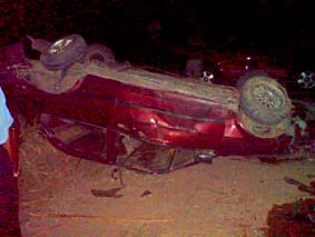 No momento da fuga, o Santana de cor vinho, de placa MVD-8140/AL, capotou na estrada de barro que liga os municípios de São Miguel e Roteiro. Depois do acidente os assaltantes trocaram tiros com os policiais e fugiram para os canaviais, mas os policiais conseguiram capturar três dos quatro elementos.
