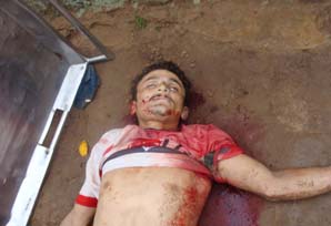 Por volta das 12,35 horas deste domingo (20), dois homens usando capuzes que viajavam em uma motocicleta de cor e placas não anotadas mataram com nove tiros de revolver o rapaz identificado como Manoel da Silva de 26 anos de idade, cujo assassinato ocorreu quando a vitima se dirigia a casa de parentes na quadra “I” do conjunto habitacional Padre Donald na periferia da cidade.